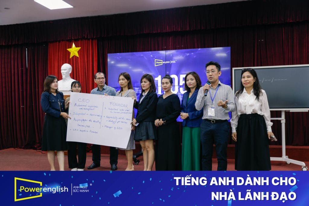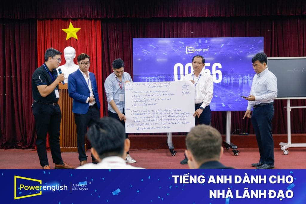 Ngoài ra, để tăng tính trải nghiệm cho học viên lớp CEO 2024, buổi chuyên đề còn được lồng ghép hoạt động thuyết trình nhóm bằng tiếng Anh đầy kịch tích, với nhiều ý tưởng sáng tạo và sâu sắc. Power English còn dành tặng những phần quà may mắn dành cho các học viên tham dự.