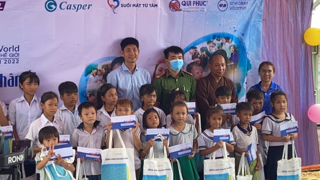 Bên cạnh đó, Power English đã chuẩn bị những phần quà nhỏ để trao đến các em, với mong muốn phần nào khuyến khích các em tiếp tục giữ vững tinh thần ham học hỏi, và tiếp tục nổ lực học tập để theo đuổi đam mê của mình. Mặc dù buổi lễ diễn ra trong điều kiện bị gián đoạn bởi mưa lớn và nặng hạt nhưng sau cùng, những phần quà đã được trao gửi trọn vẹn, sứ mệnh nâng đỡ hành trình tìm đến con chữ đã được diễn ra hoàn thiện và an toàn.