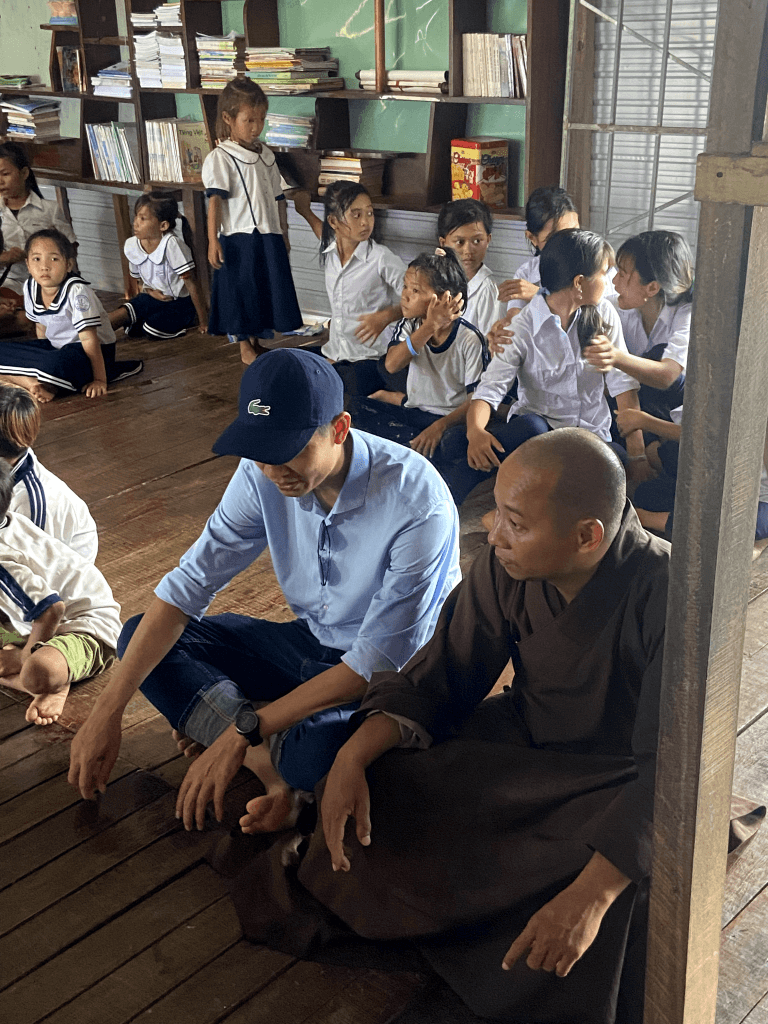 Được biết với cuộc sống lênh đênh trên con nước ngày qua ngày, việc học của các em trở nên khó khăn hơn từ việc phương tiện đi lại đến điều kiện học tập. Thương cho con đường tìm đến con chữ còn quá xa vời, thầy Thích Chơn Nguyên đã thực hiện lời kêu gọi xây dựng một lớp học mà tại đó các bạn nhỏ được dạy cách đọc, cách viết, tính toán phép tính con số. Với phương châm cố gắng hết sức để tạo điều kiện cho các em được đến trường, lớp học tình thương của thầy Chân Nguyên đã mở rộng vòng tay đón hơn 50 em học sinh khó khăn đến học tập và rèn luyện.